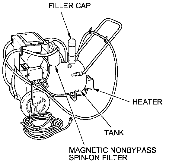 NOTE: If the red indicator above the HEAT toggle switch comes on, the fluid level in the tank is too low for the tank heater to work (see step 1 of this procedure).