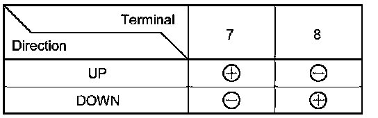 2. Test the motor in each direction by connecting battery power and ground to the front passenger's power window switch 8P connector according to the table.