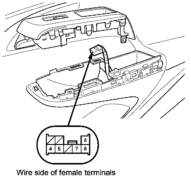 1. Remove the front passenger's power window switch Passenger's Power Window Switch Replacement.