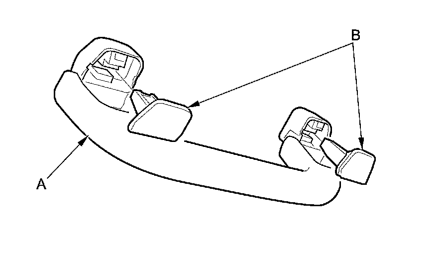 6. If the side curtain airbag has not deployed, inspect the grab handle (A) for damage. A damaged grab handle may cause the side curtain airbags to deploy improperly, possibly causing injury. Replace the grab handle if it has any of the following damage: