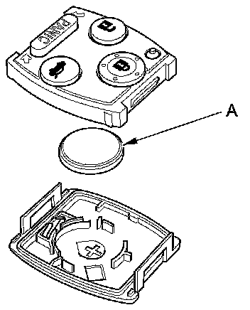 4. Replace the transmitter battery (A) with a new one (CR1616), and try to lock and unlock the doors with the transmitter by pressing the lock or unlock button five or six times.