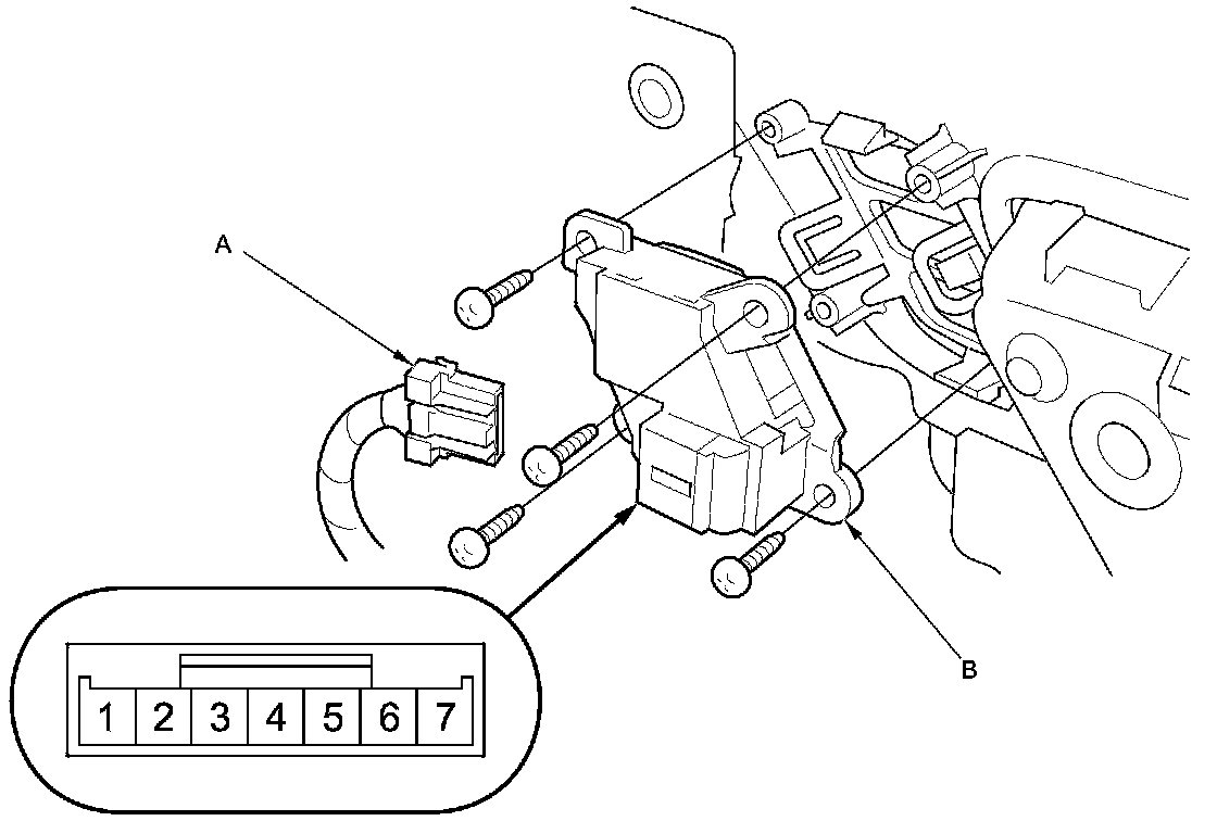 2. Disconnect the 7P connector (A) from the driver's position memory switch (B).