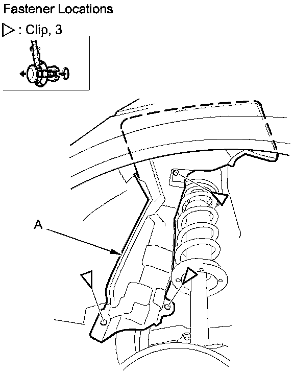 2. Detach the clips, then remove the fuel pipe protector (A).