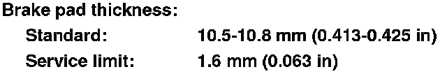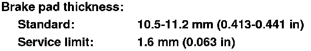 4. If any part of the brake pad thickness is less than the service limit, replace the brake pads as a set.