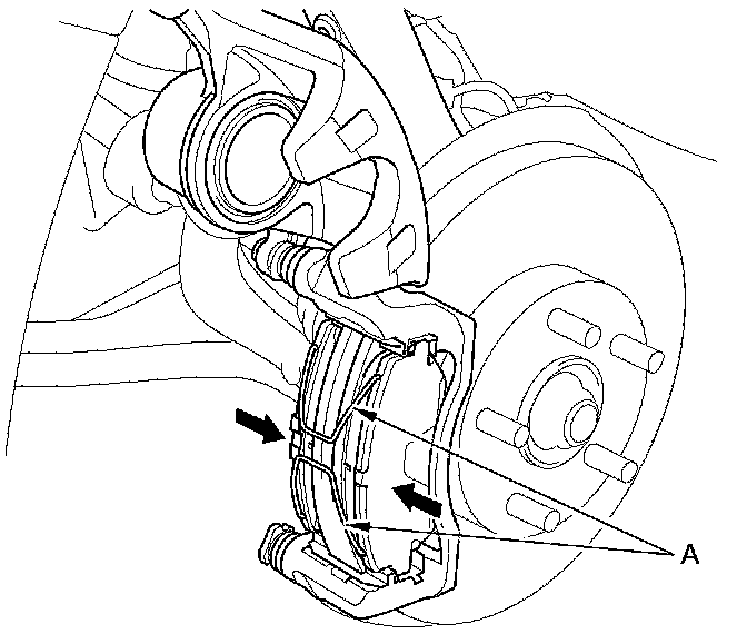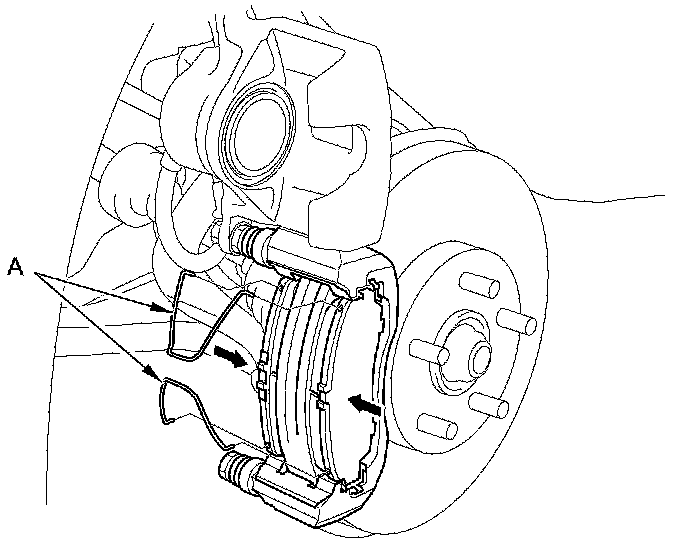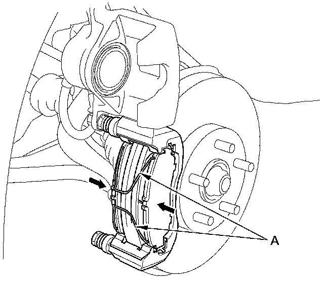 18. For some models: Install the pad return springs (A) while holding the brake pads.
