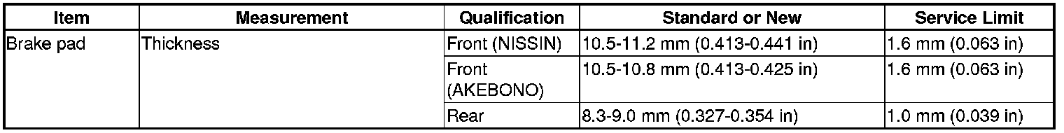 Brake Pad: Specifications