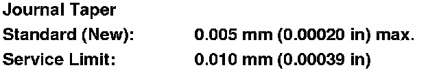 6. Measure the taper at the edges of each rod and main journal. The difference between measurements on each journal must not be more than the service limit.