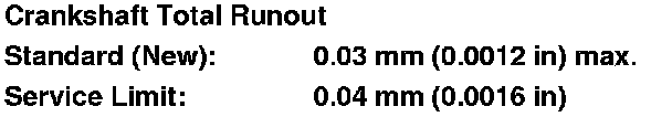 9. Measure the runout on all of the main journals. Rotate the crankshaft two complete revolutions. The difference between measurements on each journal must not be more than the service limit.