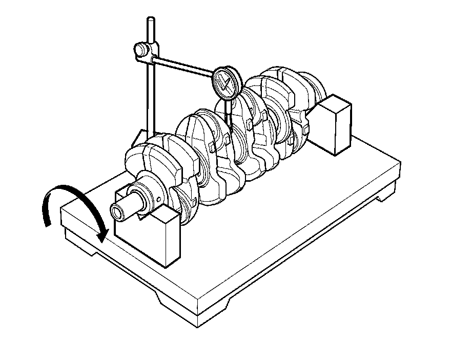 8. Check the total runout with the crankshaft supported on V-blocks.