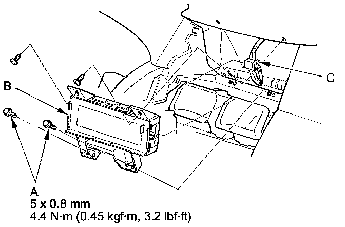 3. Disconnect the connector (C), and remove the audio-HVAC display unit.