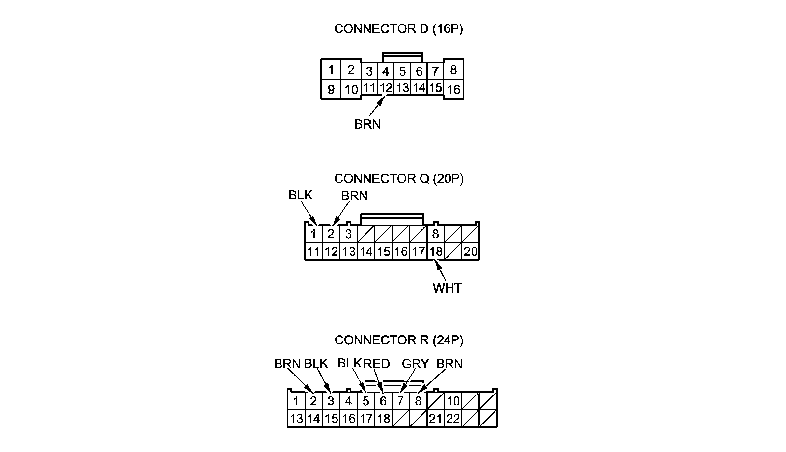 2. Disconnect driver's under-dash fuse/relay box connectors D, Q, and R.