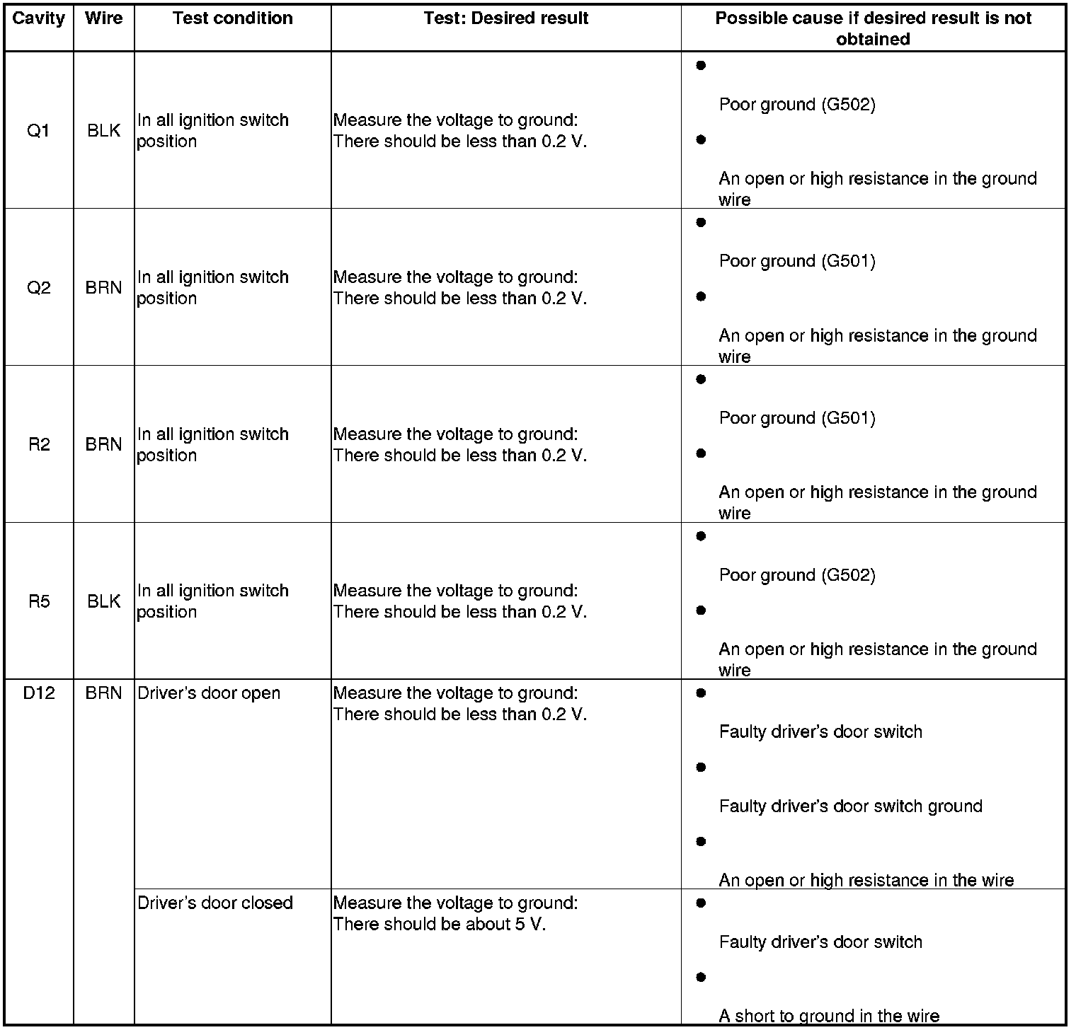 - If the symptom is still present, the driver's MICU is faulty; replace the driver's under-dash fuse/relay box.