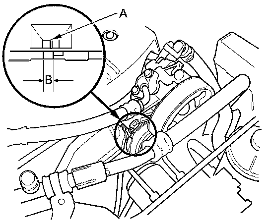 2. Check the position of the auto-tensioner indicator's pointer (A) is within the standard range (B) as shown. If it is out of the standard range, replace the drive belt Service and Repair.