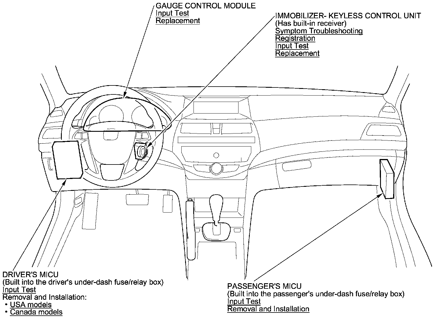 Multiplex Integrated Control System Component Location Index