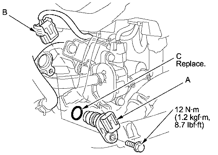 Install the parts in the reverse order of removal with a new O-ring (C).