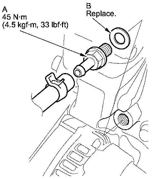 Install the parts in the reverse order of removal with a new washer (B).