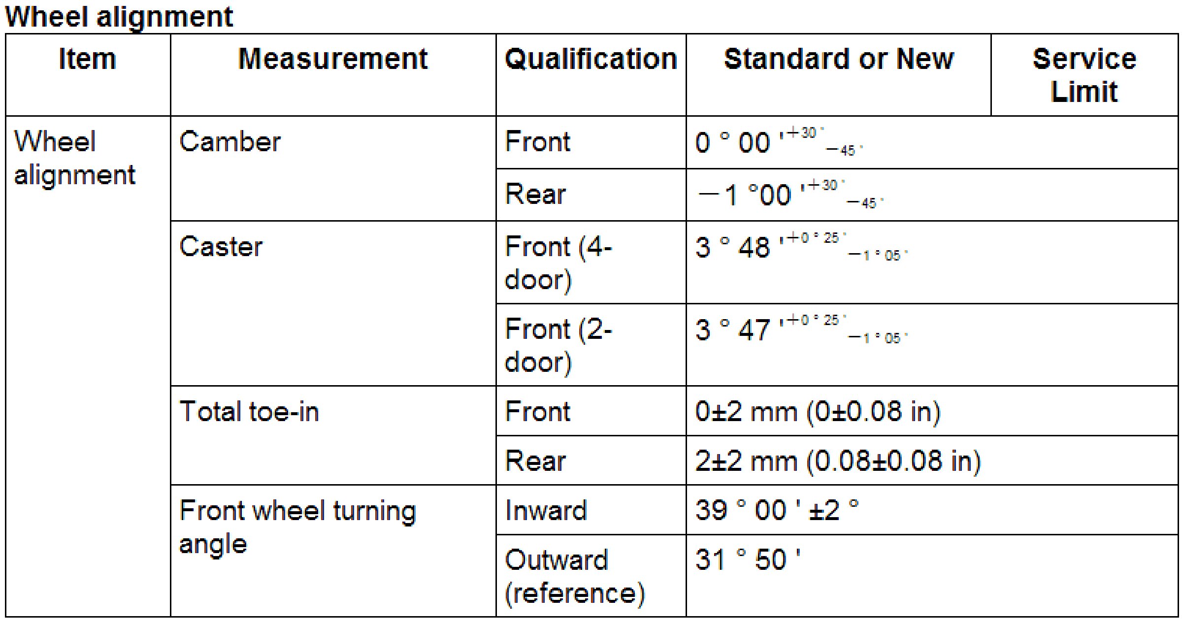 Wheel Alignment Specifications