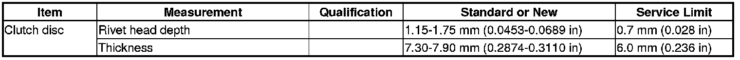 Clutch Disc Specification(s) (M/T)