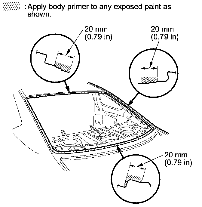 - Do not apply body primer to the rear window, and do not mix up the body and glass primer applicators.