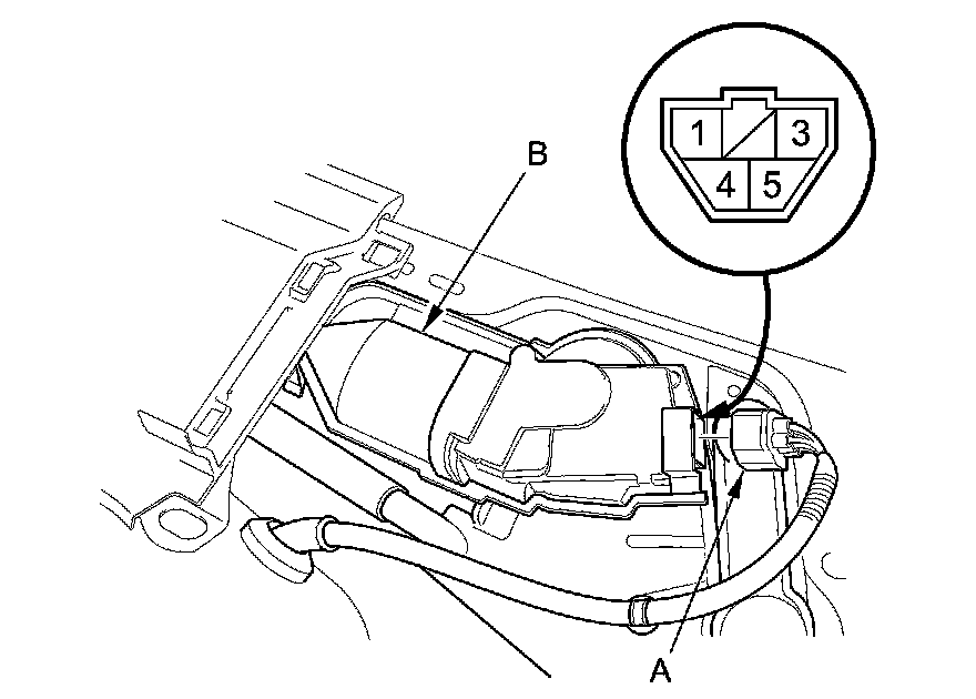 3. Disconnect 5P connector (A) from the windshield wiper motor (B).