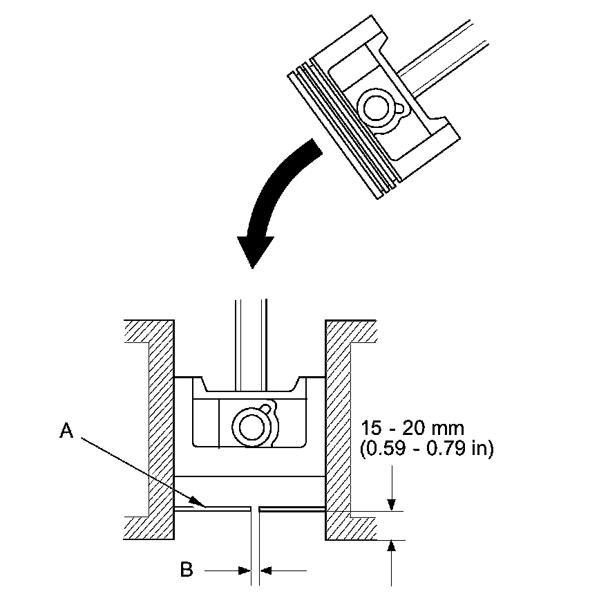 4. Using a piston, push a new ring (A) into the cylinder bore 15-20 mm (0.59-0.79 in) from the bottom.