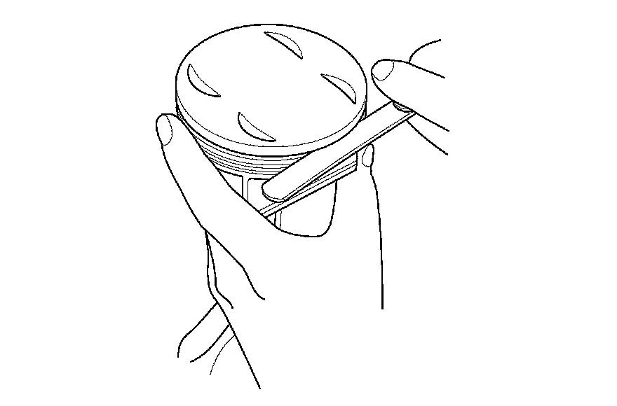 3. Clean all the ring grooves thoroughly with a squared-off broken ring, or a ring groove cleaner with a blade to fit the piston grooves. File down the blade, if necessary. The top ring and second ring grooves are 1.2 mm (0.047 in) wide, and the oil ring groove is 2.8 mm (0.110 in) wide. Do not use a wire brush to clean the ring grooves, or cut the ring grooves deeper with the cleaning tool.