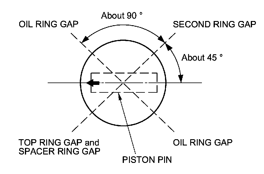 9. Position the ring end gaps as shown.