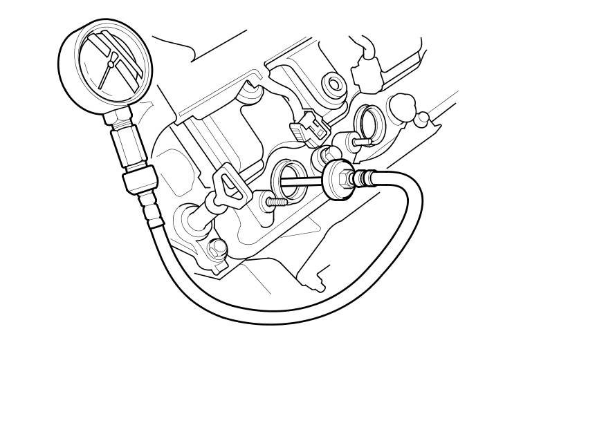 8. Attach the compression gauge to a spark plug hole.