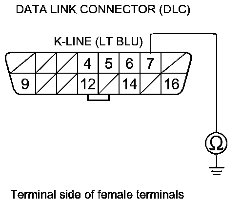 17. Check for continuity between DLC terminal No. 7 and body ground.