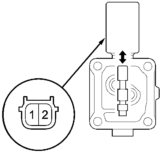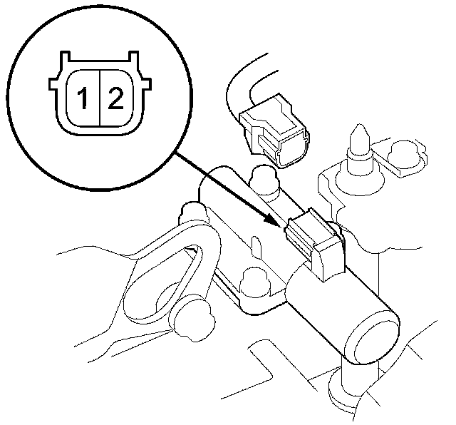 12. Connect a jumper wire from the negative battery terminal to A/T clutch pressure control solenoid valve C connector terminal No. 2, and connect another jumper wire from the positive battery terminal to connector terminal No. 1. Make sure A/T clutch pressure control solenoid valve C moves.