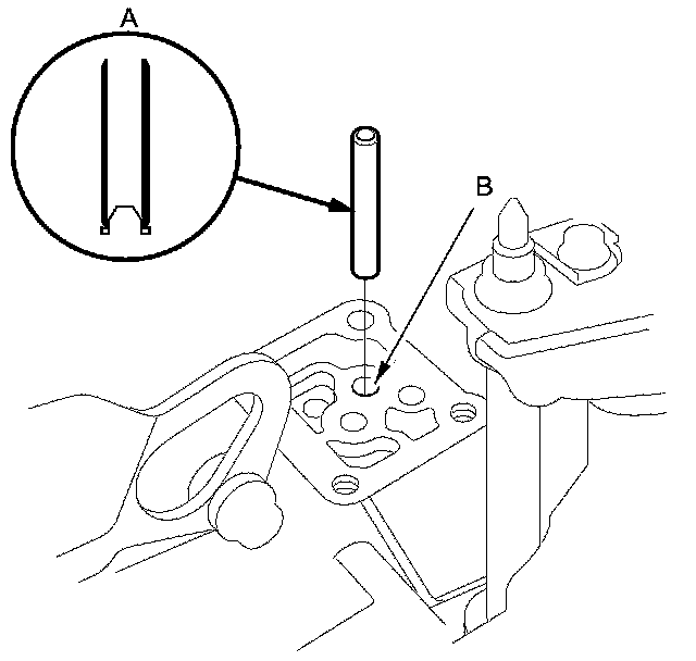15. Install the 8 x 53 mm ATF pipe (A) with the filter end into its mounting hole (B).