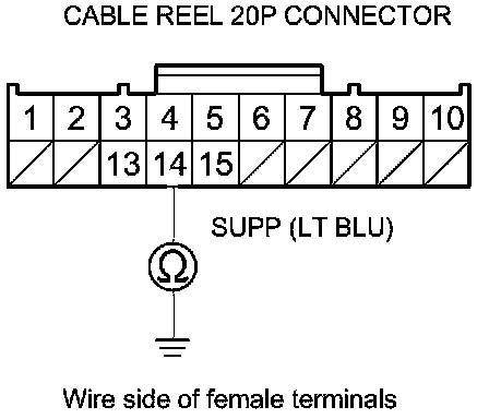 7. Check for continuity between cable reel 20P connector terminal No. 14 and body ground.