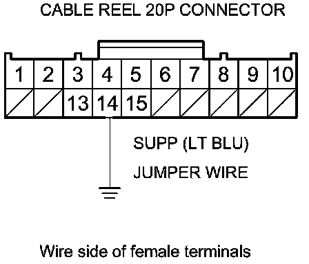 13. Connect cable reel 20P connector terminal No. 14 to body ground with a jumper wire.
