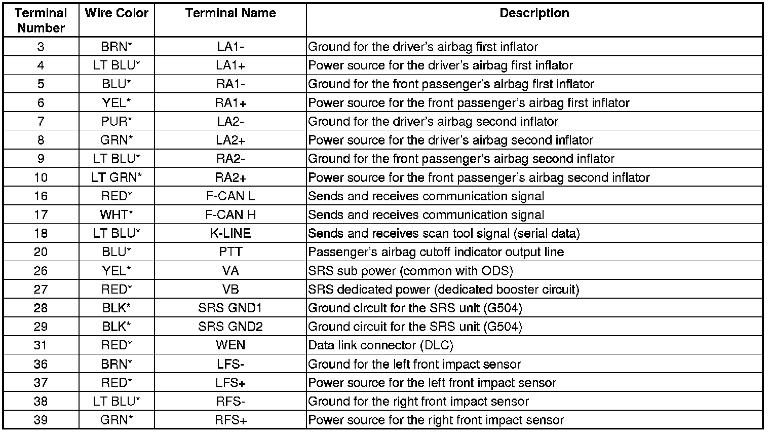 SRS Unit Inputs and Outputs at Connector A (39P)