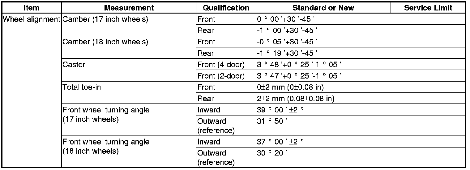 Wheel Alignment Specification(s)