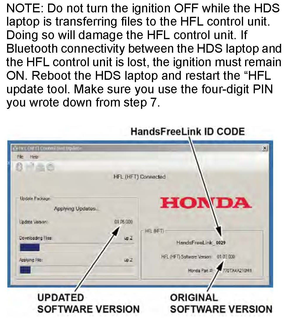 10. In the HFL update tool, select the correct Bluetooth device (if more than one appears) that matches the HandsFreeLink ID code shown in the vehicle's display screen.
