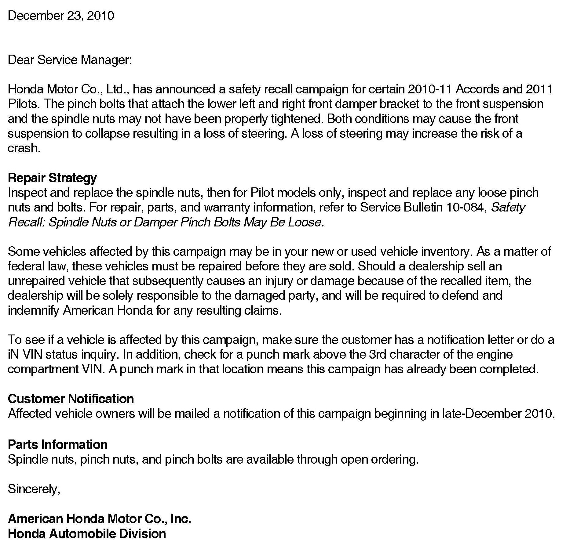 Recall - Strut Mounting Bolts Torque/Spindle Nut Torque