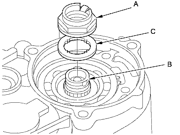 19. Pry the lock washer (C) and remove it.