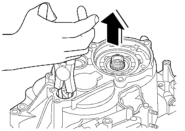 21. While expanding the snap ring of the countershaft bearing using snap ring pliers, lift the transmission housing.