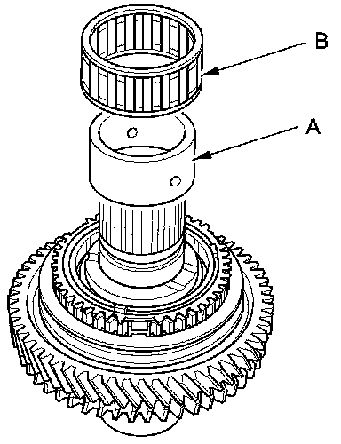 7. Install the 2nd gear distance collar (A) with the needle bearing (B).