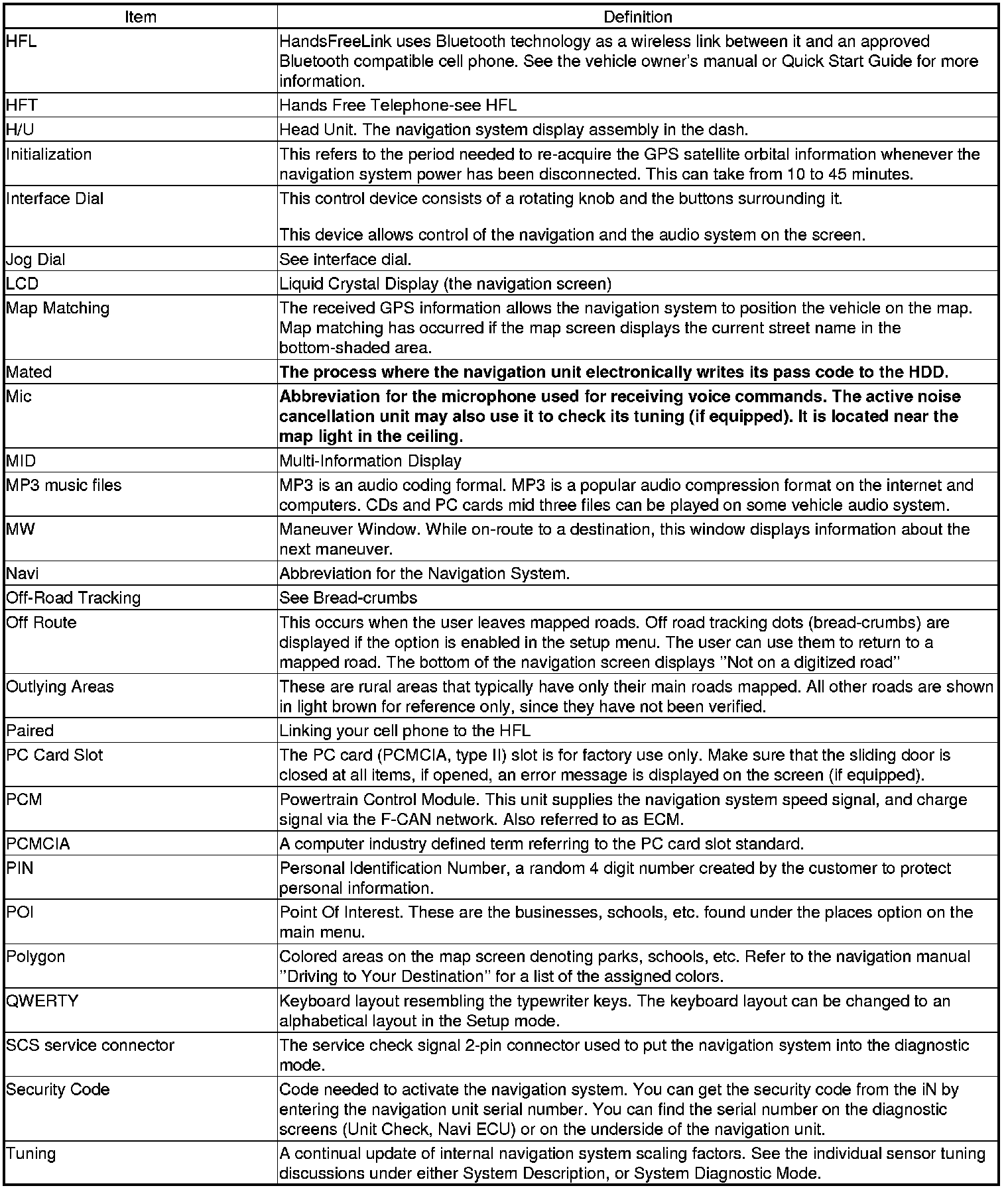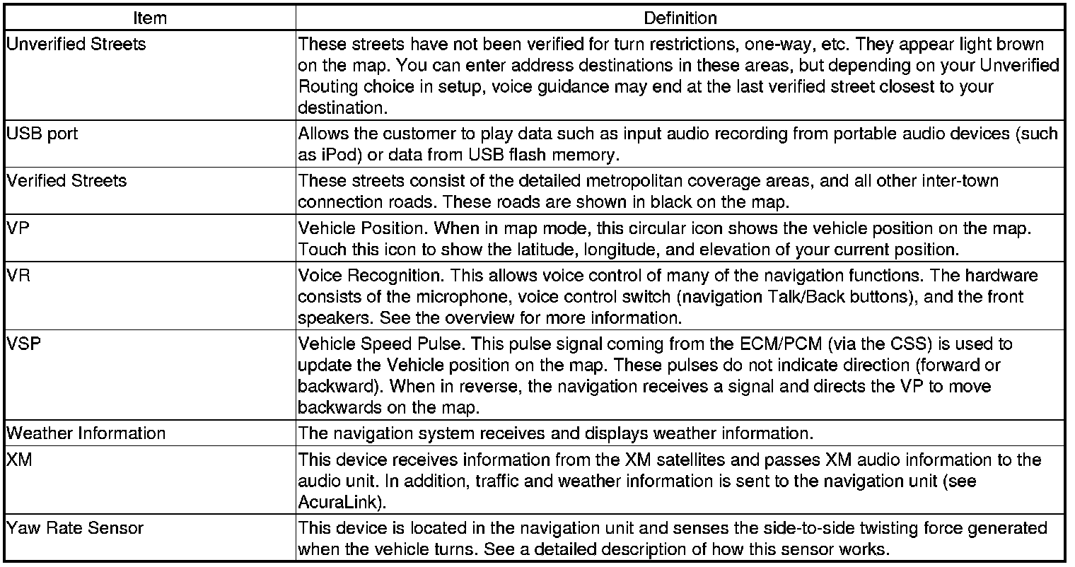The following is a glossary of terms pertaining to the Voice Recognition Navigation System.