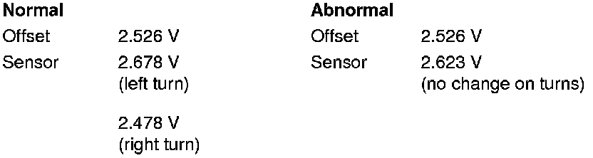 - A sensor output voltage LOWER than the Offset voltage indicates that the vehicle is turning to the right.