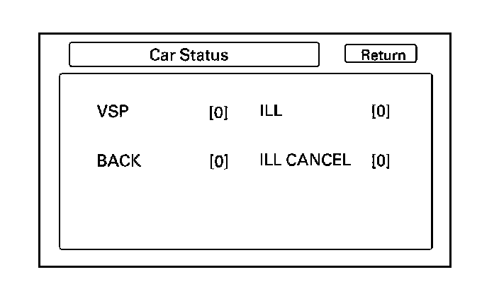 Use this screen to confirm that the audio-navigation unit is properly receiving input signals. Signals equal to (0) are OFF, and signals equal to (1) are ON. If the value on the display does not match the actual vehicle status, then check the wire carrying the signal.