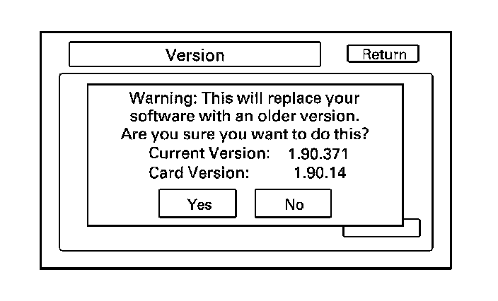 This screen displays the current version information for the navigation system software. In addition, this screen allows the loading of updated software if requested by the factory, or instructed by a Service Bulletin. Software may be loaded from a CD or a PC card.