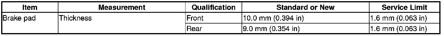 Brake Pad: Specifications
