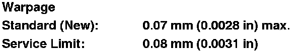 - If warpage is between 0.08 mm (0.0031 in) and 0.2 mm (0.008 in), resurface the cylinder head.