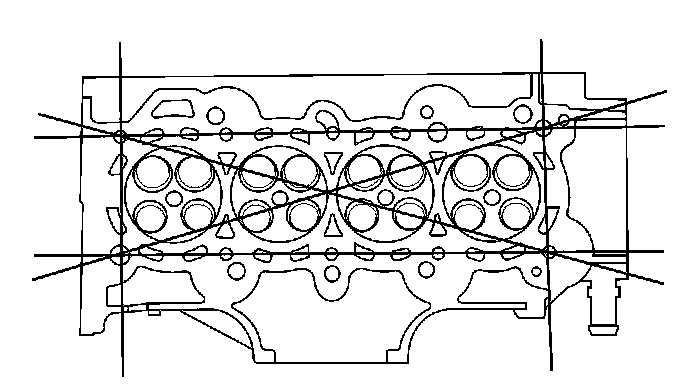 3. Check the cylinder head for warpage. Measure along the edges, and three ways across the center.