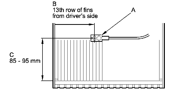 - When the evaporator temperature sensor (A) is installed into the new evaporator core, set the sensor into the factory-preset position (B, C).