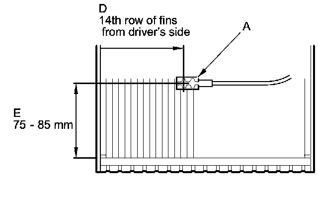 - When the evaporator temperature sensor is reinstalled into the original evaporator core, set the sensor into the new position (D, E) because the fin may be deforming by the previous installation.