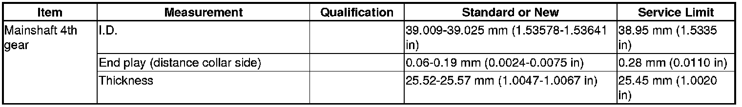 Mainshaft 4th Gear Specifications (M/T)